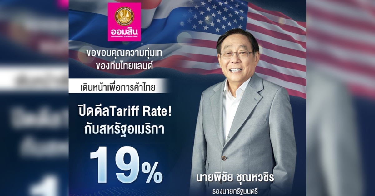 ออมสิน ขอบคุณความทุ่มเทของทีมไทยแลนด์ นำโดย ท่านพิชัย ชุณหวชิร ปิดดีล Tariff Rate! 19% กับสหรัฐอเมริกา เดินหน้าเพื่อการค้าไทย