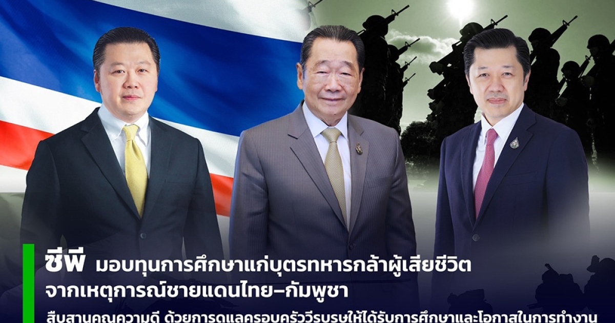 เครือเจริญโภคภัณฑ์ หรือซีพี ร้อยเรียงความดีสู่ประเทศชาติและสังคม เดินหน้าสานต่อค่านิยมองค์กร “สามประโยชน์” ประกาศมอบทุนการศึกษาและค่าครองชีพแก่บุตรและบุตรีของทหารกล้าที่เสียชีวิตจากเหตุการณ์ความไม่สงบบริเวณชายแดนไทย–กัมพูชา เพื่อสนับสนุนให้เยาวชนเหล่านี้ได้เรียนจนจบระดับปริญญาตรี พร้อมเปิดโอกาสให้เข้าทำงานในบริษัทในเครือ