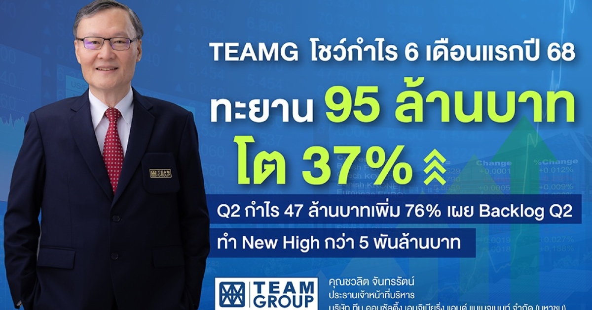 TEAMG โชว์กำไร 6 เดือนแรกปี 68 ทะยาน 95 ล้านบาท โต 37% Q2 กำไร 47 ล้านบาท เพิ่ม 76% เผย Backlog Q2 ทำ New High กว่า 5 พันล้านบาท