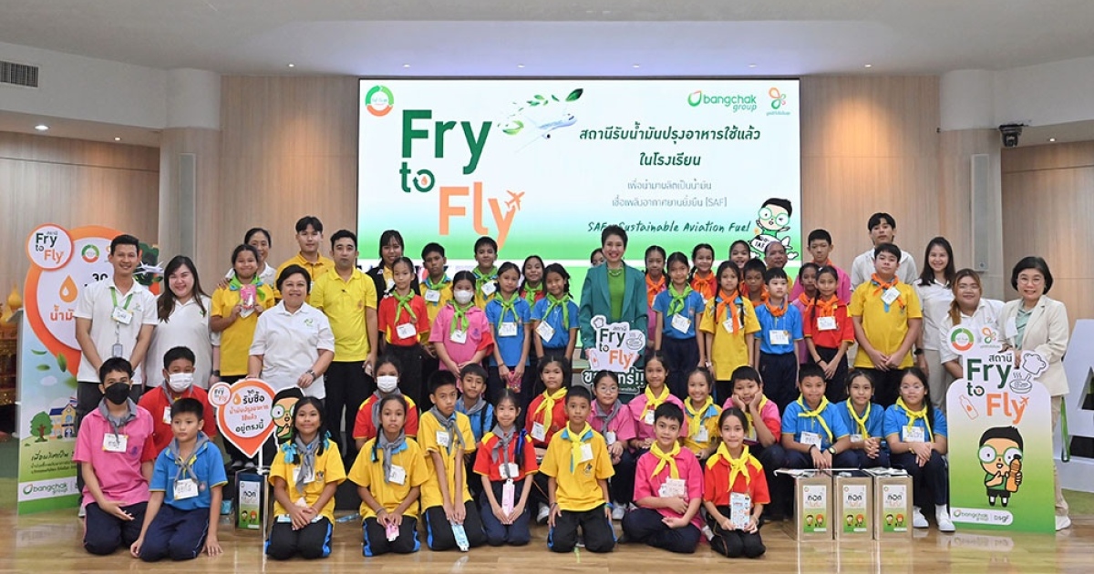 นางกลอยตา ณ ถลาง รองกรรมการผู้จัดการใหญ่งานบริหารความยั่งยืนและสื่อสารองค์กร บริษัท บางจาก คอร์ปอเรชั่น จำกัด (มหาชน) และกรรมการมูลนิธิใบไม้ปันสุข ร่วมเปิดการอบรมเชิงปฏิบัติการ โครงการ "สถานี Fry to Fly" ขยายผลจาก 4 โรงเรียนต้นแบบในปี 2567 สู่เป้าหมาย 40 โรงเรียนในปี 2568 โดยโรงเรียนที่เข้าร่วมโครงการจะเป็นจุดรับซื้อน้ำมันปรุงอาหารใช้แล้ว เพื่อนำเข้าสู่กระบวนการผลิตน้ำมันเชื้อเพลิงอากาศยานยั่งยืน (Sustainable Aviation Fuel: SAF) โดยบริษัท บีเอสจีเอฟ จำกัด พร้อมปลูกฝังจิตสำนึกเยาวชนด้านสิ่งแวดล้อมตามแนวคิดเศรษฐกิจหมุนเวียน (Circular Economy) โดยมีวิทยากรจากบริษัท บางจากฯ และมูลนิธิใบไม้ปันสุข ร่วมให้ความรู้ในการบริหารจัดการขั้นตอนรับซื้อน้ำมันปรุงอาหารใช้แล้วแก่ครูและนักเรียนระดับชั้นประถมศึกษาปีที่ 4 – มัธยมศึกษาปีที่ 2 รวมกว่า 200 คน ณ โรงกลั่นน้ำมันบางจากพระโขนง สุขุมวิท 64