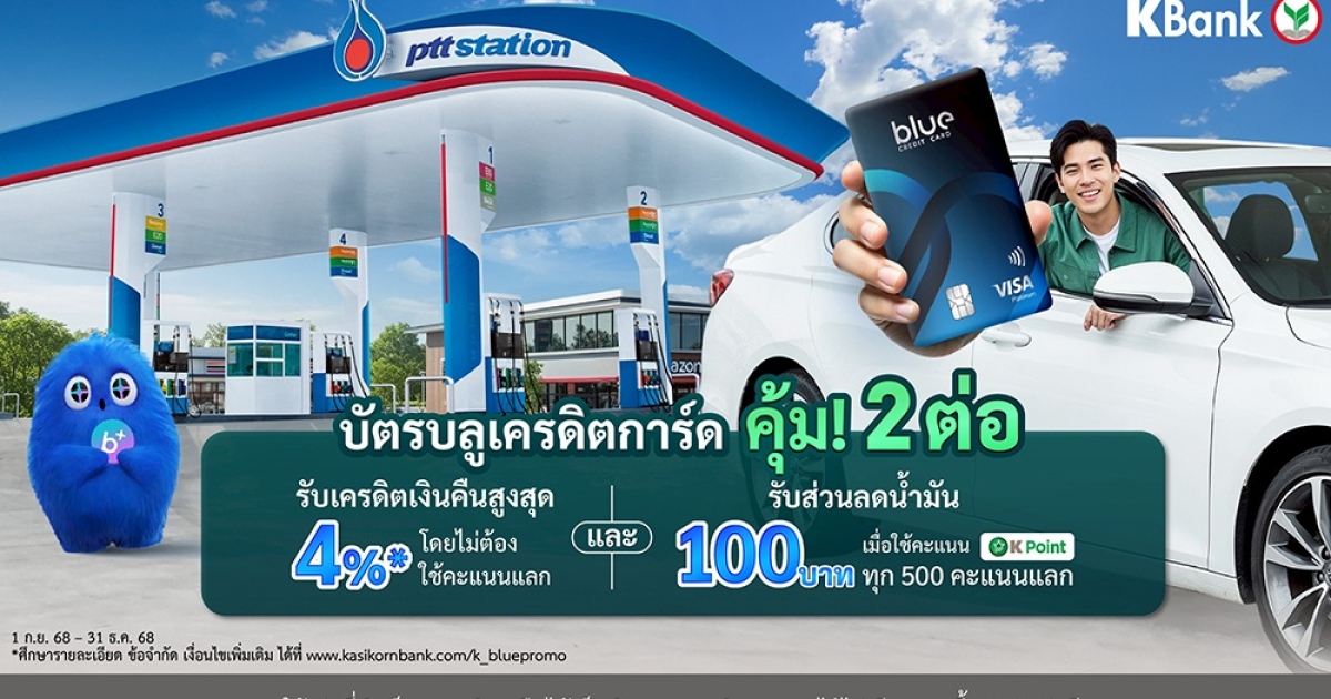 - คะแนนสะสม K Point ทุก 500 คะแนน แลกส่วนลดค่าน้ำมัน 100 บาทที่ สถานีบริการ พีทีที สเตชัน