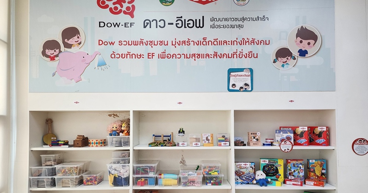 นายชาคริต เอนกพร ผู้จัดการโรงงาน พร้อมพนักงานดาวอาสาจากโรงงานโพลิออล โรงงานสไตรีน-บิวทาไดอีน เลเท็กซ์ และโรงงานโพลิออลผสม กลุ่มบริษัท ดาว ประเทศไทย (Dow) ได้ร่วมกันปรับปรุงศูนย์เรียนรู้อีเอฟ จังหวัดระยอง ภายในศูนย์บริการสาธารณสุขเทศบาลนครมาบตาพุด ให้ครบถ้วน ปลอดภัย และตอบโจทย์การพัฒนาเด็กในศตวรรษที่ 21 มากยิ่งขึ้น โดยได้ปรับปรุงมุมบทบาทสมมติที่เสริมทักษะทางสังคมและภาษา มุมเลโก้ที่ช่วยให้เด็กเรียนรู้การคิดวิเคราะห์และแนวคิดทางวิศวกรรม รวมถึงการซ่อมแซมและเสริมอุปกรณ์ต่างๆ ให้พร้อมใช้งานอย่างปลอดภัย นอกจากนี้ ยังได้เติมเต็มหนังสือ นิทาน และสื่อพัฒนา EF แบบมัลติมีเดียเข้ามาอย่างหลากหลาย พร้อมจัดกิจกรรมที่เปิดโอกาสให้เด็กได้เรียนรู้ผ่านประสบการณ์จริง โดยมีพนักงานอาสาร่วมเล่นและดูแลเด็ก ๆ อย่างอบอุ่น