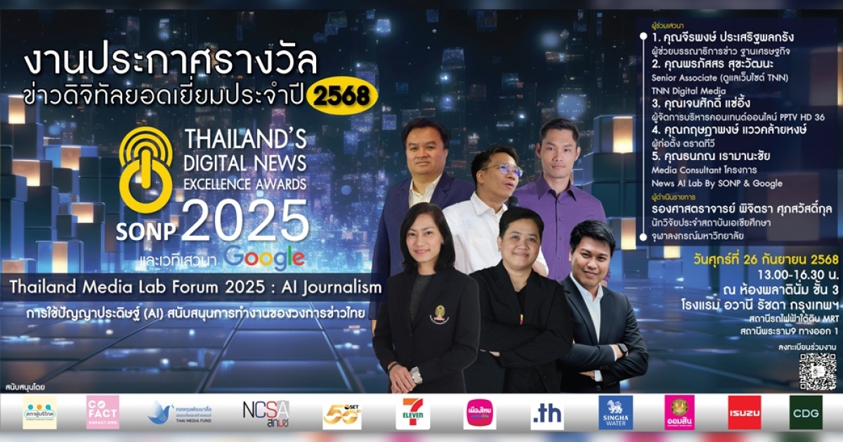 “สมาคมผู้ผลิตข่าวออนไลน์” จัดโครงการประกวด “ข่าวดิจิทัลยอดเยี่ยม ประจำปี 2568” (Digital News Excellence Awards 2025) ครั้งที่ 11 เพื่อส่งเสริมสื่อมวลชนออนไลน์ ที่มีความทุ่มเทในการทำงาน สร้างสรรค์และพัฒนาวงการข่าวออนไลน์ โดยการผลิต “ข่าวดิจิทัลคุณภาพ” ตรงกับมาตรฐานวิชาวารสารศาสตร์ จริยธรรม และจรรยาบรรณวิชาชีพ ซึ่งจะจัดให้มีงานประกาศผลรางวัลพร้อมด้วยโล่เกียรติยศ และจัดเวทีเสวนาร่วมกับ Google หัวข้อ Thailand Media Lab Forum 2025 : AI Journalism การใช้ปัญญาประดิษฐ์ (AI) สนับสนุนการทำงานของวงการข่าวไทย โดยมีผู้ร่วมเสวนา คุณจีรพงษ์ ประเสริฐพลกรัง ผู้ช่วยบรรณาธิการข่าว ฐานเศรษฐกิจ, คุณพรภัสสร สุขะวัฒนะ Senior Associate (ดูแลเว็บไซต์ TNN) TNN Digital Media, คุณเจนศักดิ์ แซ่อึ้ง ผู้จัดการบริหารคอนเทนต์ออนไลน์ PPTV HD36, คุณกฤษฎาพงษ์ แววคล้ายหงษ์ ผู้ก่อตั้งตราดทีวี และ คุณธนภณ เรามานะชัย Media Consultant โครงการ News AI Lab ผู้ดำเนินรายการ รองศาสตราจารย์ พิจิตรา ศุภสวัสดิ์กุล นักวิจัยประจำสถาบันเอเชียศึกษา จุฬาลงกรณ์มหาวิทยาลัย ในวันศุกร์ที่ 26 กันยายน 2568 เวลา 13.00 - 16.30 น. ณ ห้องพลาตินั่ม ชั้น 3 โรงแรม อวานี รัชดา กรุงเทพฯ