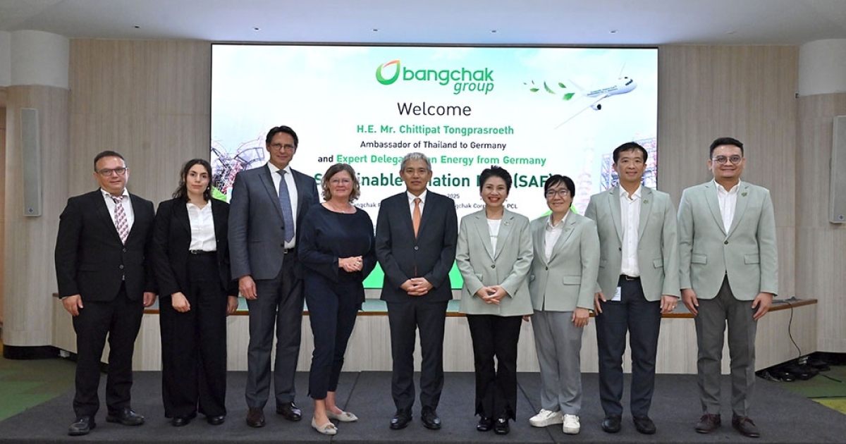 เมื่อวันที่ 16 กันยายน 2568 ฯพณฯ จิตติพัฒน์ ทองประเสริฐ เอกอัครราชทูต ณ กรุงเบอร์ลิน นำคณะผู้เชี่ยวชาญด้านพลังงานจากสหพันธ์สาธารณรัฐเยอรมนี เยี่ยมชมการดำเนินธุรกิจของกลุ่มบริษัทบางจาก ณ โรงกลั่นน้ำมันบางจาก พระโขนง โดยมี นางกลอยตา ณ ถลาง รองกรรมการผู้จัดการใหญ่ งานบริหารความยั่งยืนและสื่อสารองค์กร บริษัท บางจาก คอร์ปอเรชั่น จำกัด (มหาชน) พร้อมคณะผู้บริหารกลุ่มบริษัทบางจากร่วมต้อนรับ
