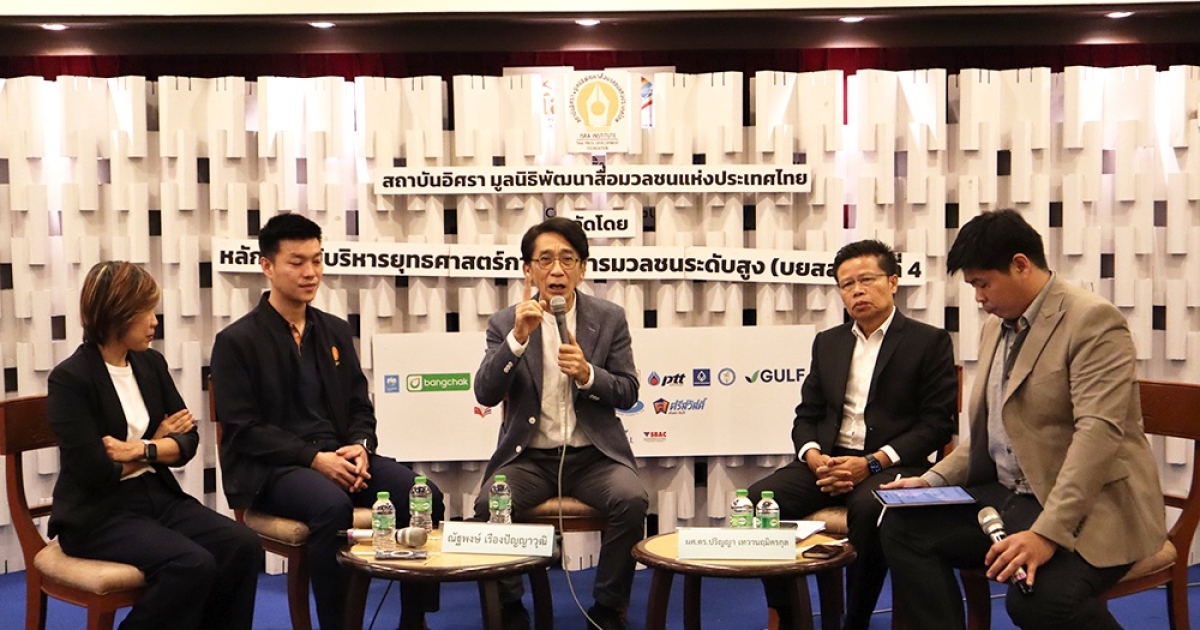 นายประสงค์ เลิศรัตนวิสุทธิ์ ผู้อำนวยการบริหารสถาบันอิศรา พร้อมด้วย พล.อ.ท.ประภาส สอนใจดี ประธานรุ่น และนางสมฤทัย ทรัพย์สมบูรณ์ ประธานกลุ่มที่ 1 และผู้เข้าอบรมหลักสูตรผู้บริหารยุทธศาสตร์การสื่อสารมวลชนระดับสูง (บยสส.) รุ่นที่ 4 กลุ่มที่ 1 ให้การต้อนรับ ผศ.ดร.ปริญญา เทวานฤมิตรกุล อาจารย์ประจำคณะนิติศาสตร์ มหาวิทยาลัยธรรมศาสตร์ และนายณัฐพงษ์ เรืองปัญญาวุฒิ หัวหน้าพรรคประชาชน ในโอกาสเสวนาสัมมนากลุ่มย่อย กลุ่มที่ 1 หัวข้อ “รัฐบาลใหม่กับทิศทางการแก้ไขรัฐธรรมนูญ” เมื่อวันเสาร์ที่ 20 กันยายน 2568 ที่ผ่านมา ณ ห้องบงกชรัตน์ บี ชั้น 2 โรงแรมรอยัล ริเวอร์ บางพลัด กรุงเทพฯ