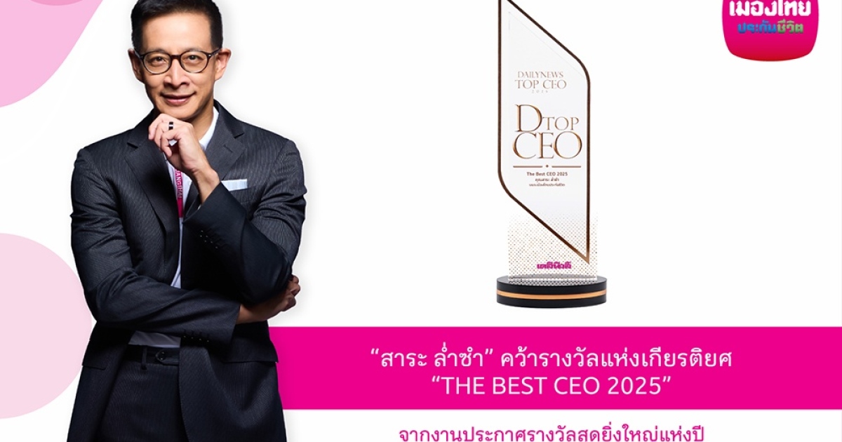 นายสาระ ล่ำซำ ประธานเจ้าหน้าที่บริหาร บริษัท เมืองไทยประกันชีวิต จำกัด (มหาชน) คว้ารางวัลอันทรงเกียรติ “THE BEST CEO 2025” ต่อเนื่องเป็นปีที่ 2 จากเวที DAILYNEWS TOP CEO 2025 การประกาศรางวัลครั้งสำคัญซึ่งจัดโดยหนังสือพิมพ์ เดลินิวส์ เพื่อเชิดชูผู้บริหารสูงสุดที่สร้างผลงานโดดเด่นเป็นที่ประจักษ์ในด้านการขับเคลื่อนองค์กรให้เติบโตอย่างมั่นคงและยั่งยืน ท่ามกลางบริบทเศรษฐกิจและสังคมที่เต็มไปด้วยความท้าทาย อีกทั้งยังเป็นแรงบันดาลใจแก่ผู้ประกอบการรุ่นใหม่และสังคมไทย โดยพิธีจัดขึ้น ณ โรงแรมเซ็นทารา แกรนด์ แอท เซ็นทรัลเวิลด์