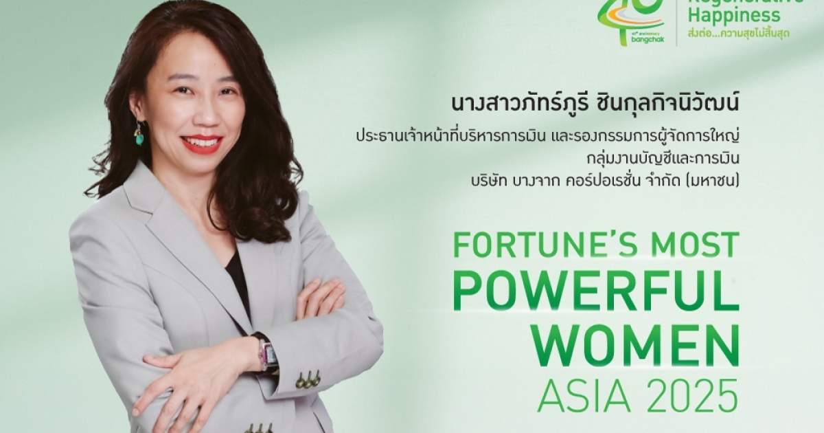CFO บางจากฯ ติดอันดับ Fortune’s Most Powerful Women Asia 2025 ต่อเนื่องปีที่ 2 ตอกย้ำบทบาทผู้นำหญิงบริษัทพลังงานไทย บนเวทีโลก