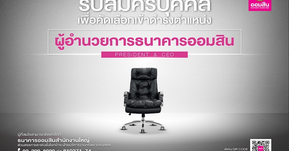 นายธีรลักษ์ แสงสนิท รองปลัดกระทรวงการคลัง ในฐานะประธานกรรมการสรรหาผู้อำนวยการธนาคารออมสิน เปิดเผยว่า คณะกรรมการสรรหาผู้อำนวยการธนาคารออมสิน ได้มีมติเห็นชอบให้ประกาศรับสมัครบุคคลเพื่อคัดเลือกเข้าดำรงตำแหน่งผู้อำนวยการธนาคารออมสิน โดยผู้ที่สนใจสามารถยื่นใบสมัครพร้อมเอกสารหลักฐานประกอบการสมัครได้ตั้งแต่วันอังคารที่ 14 ตุลาคม - วันจันทร์ที่ 27 ตุลาคม 2568