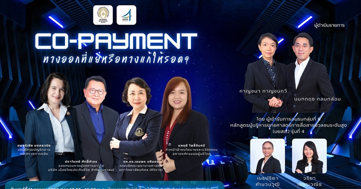 นายประสงค์ เลิศรัตนวิสุทธิ์ ผู้อำนวยการบริหารสถาบันอิศรา นายชวรงค์ ลิมป์ปัทมปาณี ผู้อำนวยการหลักสูตร และนายนนทกฤช กลมกล่อม ประธานกลุ่มที่ 6 และผู้เข้าอบรมหลักสูตรผู้บริหารยุทธศาสตร์การสื่อสารมวลชนระดับสูง (บยสส.) รุ่นที่ 4 กลุ่มที่ 6 ให้การต้อนรับ นางแพตริเซีย มงคลวนิช อธิบดีกรมบัญชีกลาง กระทรวงการคลัง และนางสาวมลฤดี โพธิ์อินทร์ หัวหน้าฝ่ายนโยบายและนวัตกรรมสภาองค์กรของผู้บริโภค ในโอกาสเสวนาสัมมนากลุ่มย่อย กลุ่มที่ 6 หัวข้อ CO-PAYMENT ทางออกที่แย่หรือทางแก้ให้รอด? เมื่อวันเสาร์ที่ 11 ตุลาคม 2568 ที่ผ่านมา ณ ห้องบงกชรัตน์ บี ชั้น 2 โรงแรมรอยัล ริเวอร์ บางพลัด กรุงเทพฯ