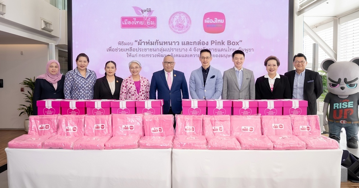 เมืองไทยประกันชีวิตและมูลนิธิเมืองไทยยิ้ม ร่วมเดินหน้าสานต่อภารกิจ “ส่งต่อความอบอุ่น สู่หัวใจคนไทย” มอบผ้าห่มกันหนาวและกล่อง “Pink Box” เพื่อช่วยเหลือประชาชนกลุ่มเปราะบางให้แก่กระทรวงการพัฒนาสังคมและความมั่นคงของมนุษย์ ภายใต้โครงการ “พม.ใกล้คุณ” ร่วมบรรเทาทุกข์และเตรียมพร้อมรับมือภัยหนาวในช่วงปลายปี สะท้อนเจตนารมณ์ขององค์กรในการส่งต่อความห่วงใยและสร้างรอยยิ้มให้กับสังคมไทยอย่างยั่งยืน