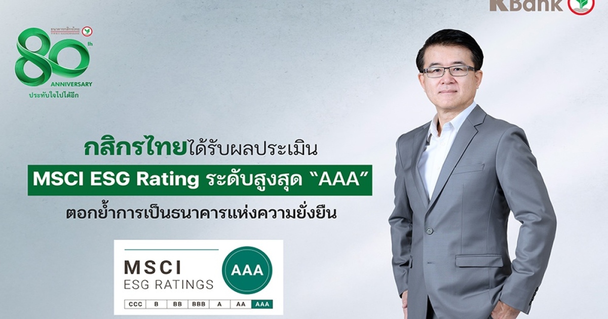 กสิกรไทยได้รับผลประเมิน MSCI ESG Rating ระดับสูงสุด “AAA” ตอกย้ำการเป็นธนาคารแห่งความยั่งยืน