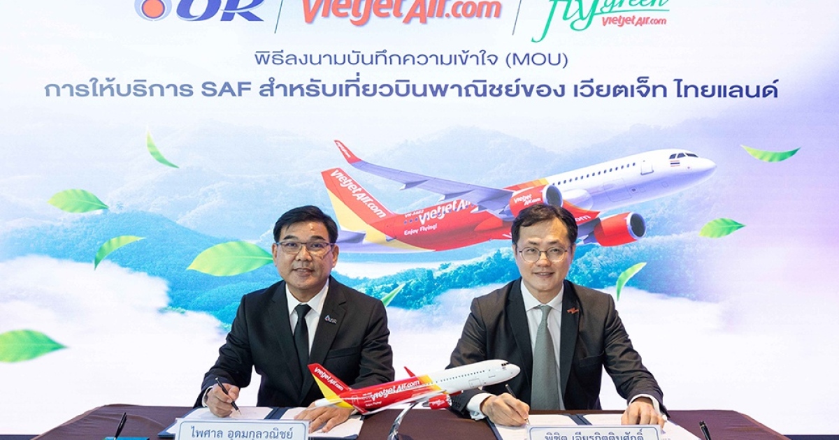 เวียตเจ็ทไทยแลนด์ หนุนใช้ “น้ำมัน SAF” จาก OR ในเที่ยวบินเชิงพาณิชย์ เตรียมขยาย 2 เส้นทาง “Green Route” ดีเดย์ไตรมาส 1 ปี 69