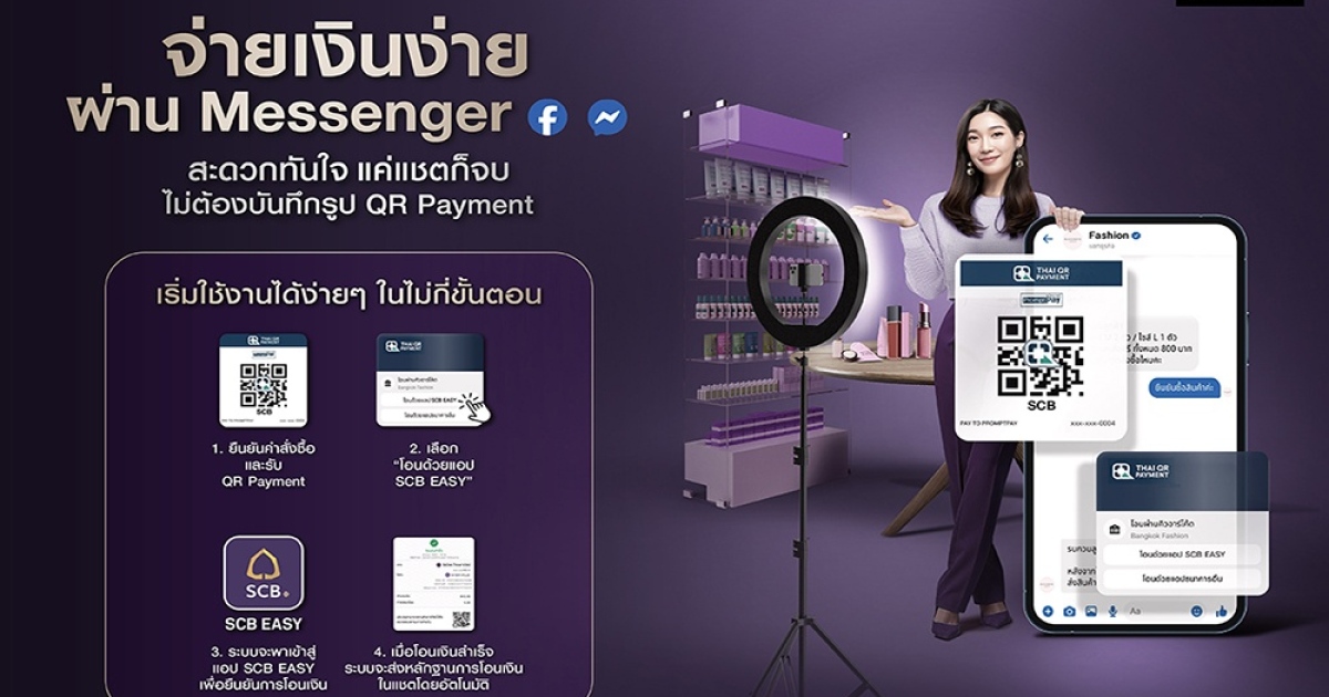 SCB เปิดตัวบริการ “โอนมั่นใจ ไม่สะดุด กับแอป SCB EASY ผ่าน Messenger" ทางเลือกใหม่ร้านค้าออนไลน์รับจ่ายง่ายด้วย QR ครั้งแรกในไทย - สะดวกทันใจ แค่แชตก็จบ ไม่ต้องกรอกเลขบัญชี ไม่ต้องบันทึกรูป QR