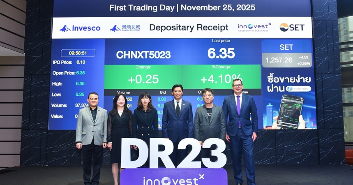 บริษัทหลักทรัพย์ อินโนเวสท์ เอกซ์ จำกัด (InnovestX) บริษัทหลักทรัพย์ในกลุ่มเอสซีบีเอกซ์ (SCBX Group) ร่วมกับ Invesco และ Invesco Great Wall (IGW) เปิดตัวตราสารแสดงสิทธิในหลักทรัพย์ต่างประเทศตัวใหม่ (DR23) ภายใต้ชื่อ CHNXT5023 อ้างอิงกองทุน Invesco Great Wall ChiNext 50 ETF เข้าซื้อขายวันแรก (1st Trading Day) ในตลาดหลักทรัพย์แห่งประเทศไทย โดยได้รับเกียรติจากผู้บริหารตลาดหลักทรัพย์แห่งประเทศไทย (SET), ตลาดหลักทรัพย์เซินเจิ้น (SZSE), Invesco และ IGW ร่วมพิธีเปิดการซื้อขายอย่างเป็นทางการ นับเป็นครั้งแรกที่ ETF ดัชนี ChiNext 50 ซึ่งรวบรวม 50 หุ้นบริษัทนวัตกรรมชั้นนำของจีน เปรียบเสมือน “NASDAQ ของสหรัฐอเมริกา” เปิดให้ผู้ลงทุนไทยเข้าถึงได้โดยตรงผ่านตลาดหุ้นไทย ซื้อขายเป็นเงินบาทเสมือนลงทุนหุ้นไทยทั่วไป ช่วยลดข้อจำกัดด้านสกุลเงิน ขั้นตอนการเปิดบัญชีต่างประเทศ และการเข้าถึงหุ้นจีน A-Share ที่โดยปกติมีโควต้าจำกัดสำหรับนักลงทุนต่างชาติ รวมถึงช่องทางการลงทุนโดยตรงในไทยที่มีเพียงผู้ให้บริการบางรายเท่านั้น