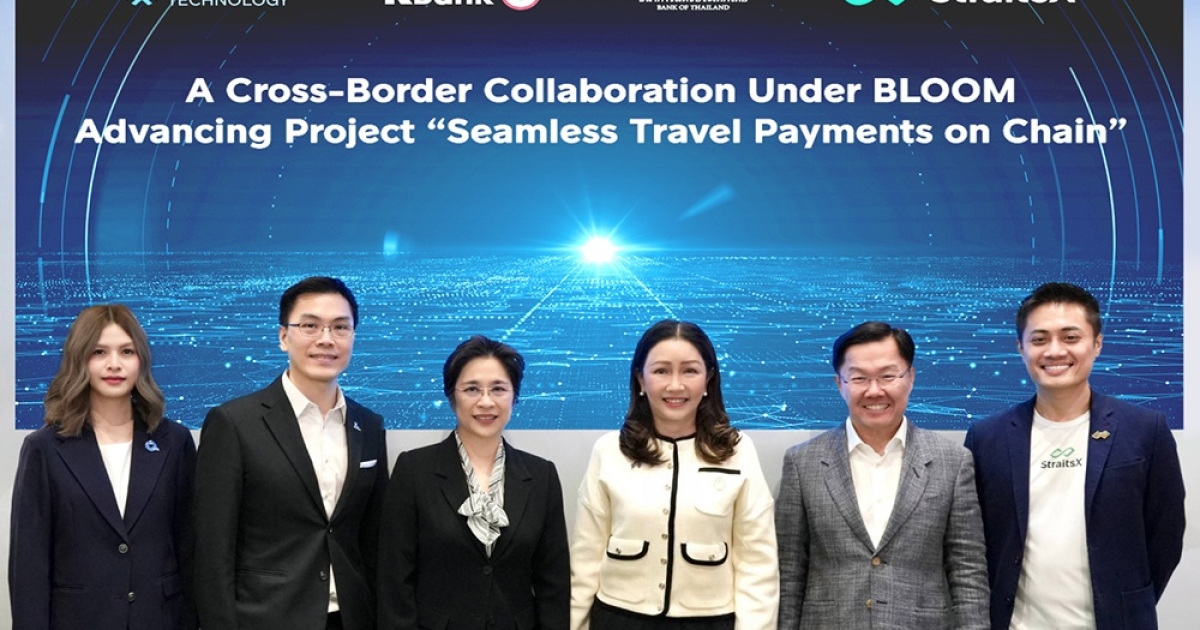 ธนาคารกสิกรไทย (KBank) ร่วมกับ บริษัท ออร์บิกซ์ เทคโนโลยี แอนด์ อินโนเวชัน จำกัด (Orbix Technology) และ บริษัท StraitsX ประกาศเปิดตัว Seamless Travel Payments on Chain ภายใต้โครงการ BLOOM (Borderless, Liquid, Open, Online, Multi-currency) ซึ่งเป็นความร่วมมือระดับนานาชาติที่นำโดยธนาคารกลางสิงคโปร์ (MAS) เพื่อเชื่อมโยงระบบการชำระเงินดิจิทัลที่อยู่ภายใต้การกำกับดูแลของแต่ละประเทศให้ทำงานร่วมกันได้อย่างไร้รอยต่อผ่านเทคโนโลยีบล็อกเชน รองรับการชำระเงินด้วย QR Code ระหว่างไทย–สิงคโปร์แบบเรียลไทม์ ภายในปี พ.ศ. 2569 โครงการนี้เปิดตัวอย่างเป็นทางการในงาน Singapore FinTech Festival 2025 ซึ่งจัดขึ้นระหว่างวันที่ 12-14 พฤศจิกายน พ.ศ. 2568 โดยมีธนาคารระดับโลกและภูมิภาค บริษัทผู้ให้บริการด้านการชำระเงินชั้นนำ ผู้นำด้านเทคโนโลยี นักลงทุน และหน่วยงานกำกับดูแลเข้าร่วมงาน พร้อมทั้งผู้บริหารธนาคารกสิกรไทยได้ร่วมแบ่งปันวิสัยทัศน์เกี่ยวกับการเปลี่ยนแปลงของอุตสาหกรรมการเงินในยุคดิจิทัล ความร่วมมือนี้นับเป็นการนำเสนอกรณีการใช้งานจริง (Use Case) สำหรับการชำระเงินระหว่างนักท่องเที่ยวไทยและสิงคโปร์ ที่สามารถชำระเงินแบบเรียลไทม์ผ่าน QR Code กับร้านค้าท้องถิ่นโดยตรง ด้วยเงินอิเล็กทรอนิกส์ (E-money) ภายใต้การกำกับดูแล และเทคโนโลยีบล็อกเชนแบบเชื่อมโยง (Interoperable Blockchain Technology) ซึ่งนับเป็นก้าวสำคัญในการยกระดับประสบการณ์การชำระเงินข้ามพรมแดนให้สะดวก รวดเร็ว ปลอดภัย และเป็นไปตามมาตรฐานการกำกับดูแลจากหน่วยงานที่เกี่ยวข้อง