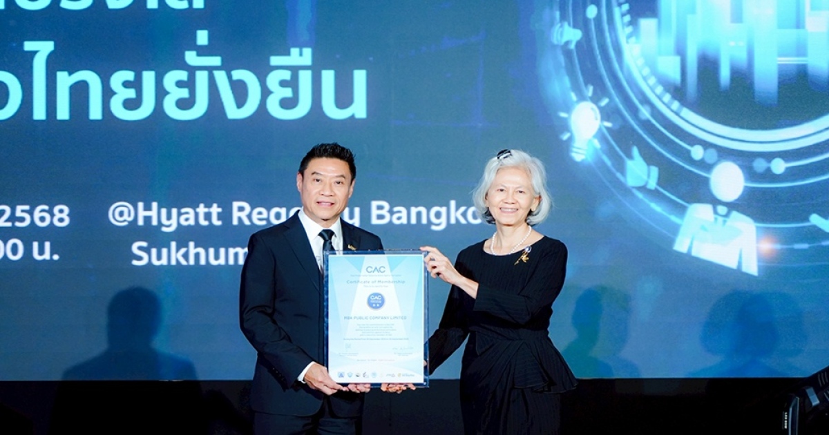 นายเกษมสุข จงมั่นคง ประธานเจ้าหน้าที่บริหารสายการเงิน บริษัท เอ็ม บี เค จำกัด (มหาชน) (ที่ 1 จากซ้าย) รับประกาศนียบัตร บริษัทที่ผ่านการต่ออายุรับรองครั้งที่ 3 การเป็นสมาชิกแนวร่วมปฏิบัติของภาคเอกชนไทยในการต่อต้านการทุจริต (Thai Private Sector Collective Action Against Corruption: CAC) ในงาน CAC Certification Ceremony 2/2025 ภายใต้แนวคิด CAC Incentive Pool ร่วมสร้างสิทธิประโยชน์แห่งความโปร่งใส เพื่อธุรกิจไทยยั่งยืน โดยมี นางอรนุช อภิศักดิ์ศิริกุล นายกสมาคมบริษัทจดทะเบียนไทย (ที่ 2จากซ้าย) เป็นตัวแทนมอบประกาศนียบัตร ณ โรงแรม ไฮแอท รีเจนซี่ กรุงเทพ เมื่อเร็ว ๆ นี้