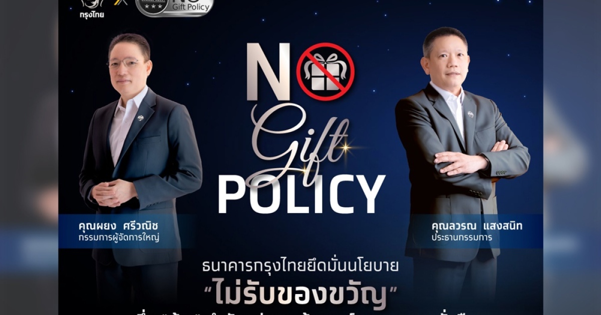 ธนาคารกรุงไทยยึดมั่นนโยบาย “ไม่รับของขวัญ” หนึ่ง “ก้าว” สำคัญ สู่การสร้างองค์กรคุณธรรมยั่งยืน