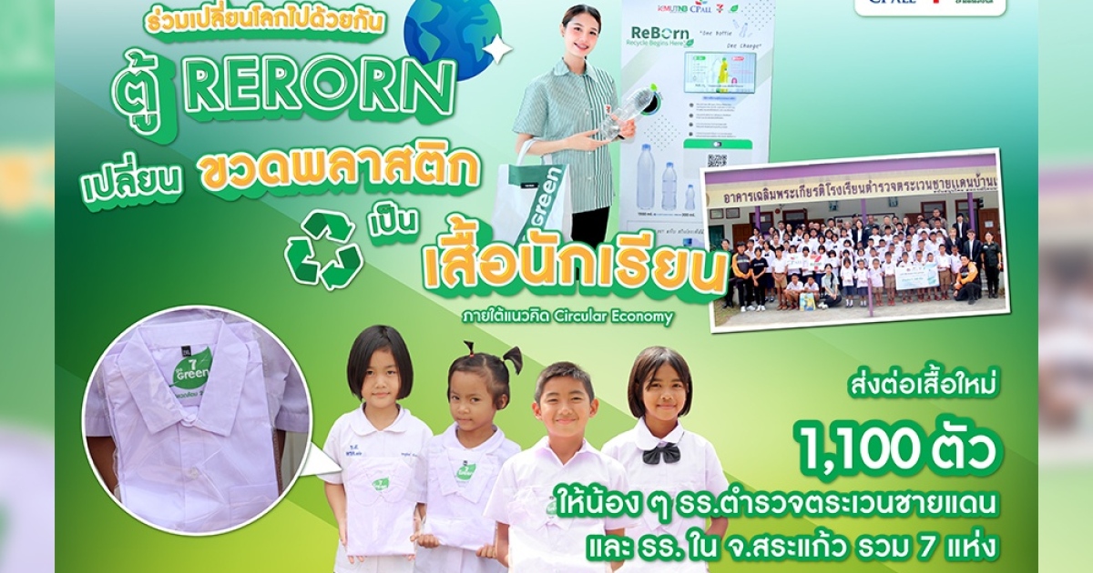 ซีพี ออลล์ ส่งมอบเสื้อนักเรียนรีไซเคิลจำนวน 1,100 ตัว จากโครงการ “Reborn ตู้รีไซเคิลขวดพลาสติก” ให้ รร.ตชด. และโรงเรียนใน จ.สระแก้ว รวม 7 แห่ง