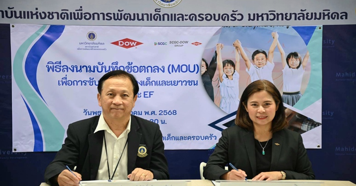 สถาบันแห่งชาติเพื่อการพัฒนาเด็กและครอบครัว มหาวิทยาลัยมหิดล และกลุ่มบริษัท ดาว ประเทศไทย (Dow) ร่วมลงนามบันทึกข้อตกลงความร่วมมือทางวิชาการ (MOU) เพื่อยกระดับการพัฒนาเด็กไทยผ่านทักษะสมอง Executive Functions (EF) ให้เกิดผลอย่างเป็นรูปธรรมในระดับประเทศ ซึ่งเป็นรากฐานสำคัญของการเรียนรู้ การคิดวิเคราะห์ การควบคุมตนเอง และความยืดหยุ่นในการเผชิญปัญหาในศตวรรษที่ 21 ณ สถาบันแห่งชาติเพื่อการพัฒนาเด็กและครอบครัว พร้อมถ่ายทอดสดผ่านระบบออนไลน์เพื่อเปิดพื้นที่ให้ครู ผู้ปกครอง นักวิชาการ และผู้ทำงานด้านเด็กทั่วประเทศร่วมรับฟังแนวทางความร่วมมือครั้งสำคัญนี้