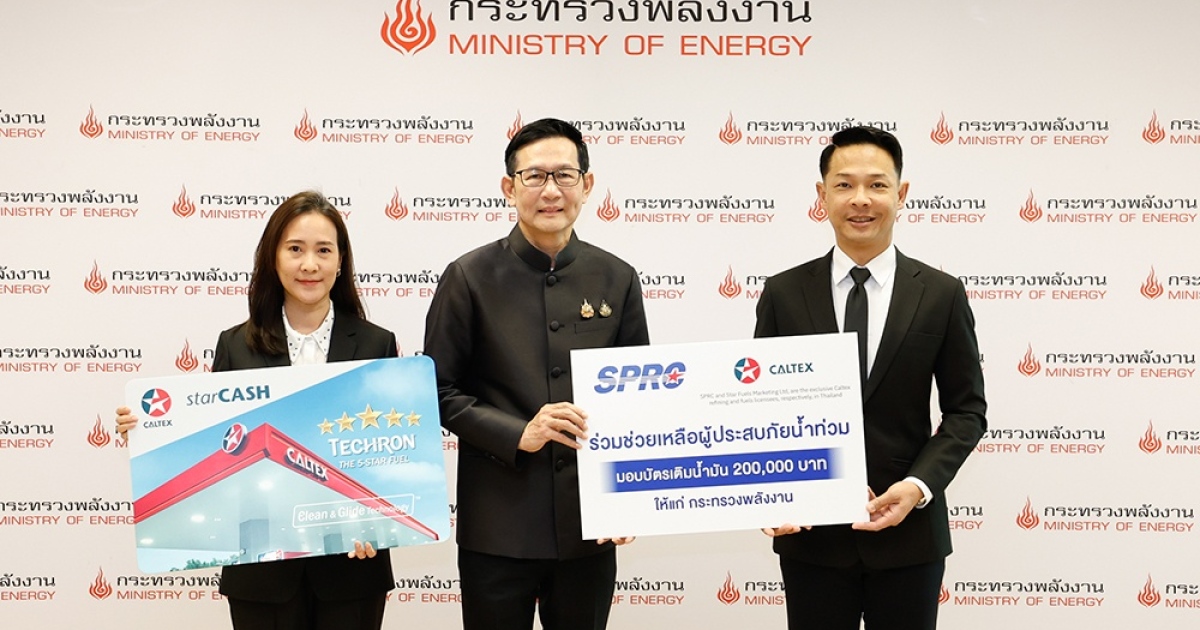 นายอรรถพล ฤกษ์พิบูลย์ รัฐมนตรีว่าการกระทรวงพลังงาน (กลาง) ให้เกียรติรับมอบบัตรเติมน้ำมันคาลเท็กซ์ สตาร์แคช (StarCASH) มูลค่า 200,000 บาท จาก นายวีรพงษ์ นุ่มตี่ ผู้ช่วยกรรมการผู้จัดการใหญ่ ฝ่ายธุรกิจค้าปลีกน้ำมันเชื้อเพลิงและธุรกิจบัตร (ขวา) พร้อมด้วย นางสาวภิญญดา ธนาติณณภพ ผู้จัดการฝ่ายกิจการองค์กร (ซ้าย) บริษัท สตาร์ ฟูเอลส์ มาร์เก็ตติ้ง จำกัด ซึ่งเป็นบริษัทในเครือของบริษัท SPRC และเป็นผู้ได้รับสิทธิแต่เพียงผู้เดียวในการประกอบธุรกิจน้ำมันเชื้อเพลิงภายใต้ชื่อคาลเท็กซ์ในประเทศไทย เพื่อสนับสนุนการปฏิบัติภารกิจของเจ้าหน้าที่กู้ภัย อาสาสมัคร รวมถึงผู้นำในชุมชนในพื้นที่ ให้สามารถดำเนินการช่วยเหลือผู้ประสบอุทกภัยภาคใต้ได้อย่างเต็มที่ ช่วยเสริมศักยภาพเรื่องการเดินทางหรือการขนส่งสิ่งของจำเป็นไปยังพื้นที่ที่ประสบภัย ซึ่งบัตรเติมน้ำมันคาลเท็กซ์ สตาร์แคช เป็นบัตรใช้แทนเงินสดสำหรับใช้บริการเติมน้ำมันชนิดใดก็ได้ภายในสถานีบริการน้ำมันคาลเท็กซ์ที่ร่วมรายการทั่วประเทศ ณ ศูนย์เอนเนอร์ยี่คอมเพล็กซ์ (EnCo) อาคาร B เมื่อเร็ว ๆ นี้