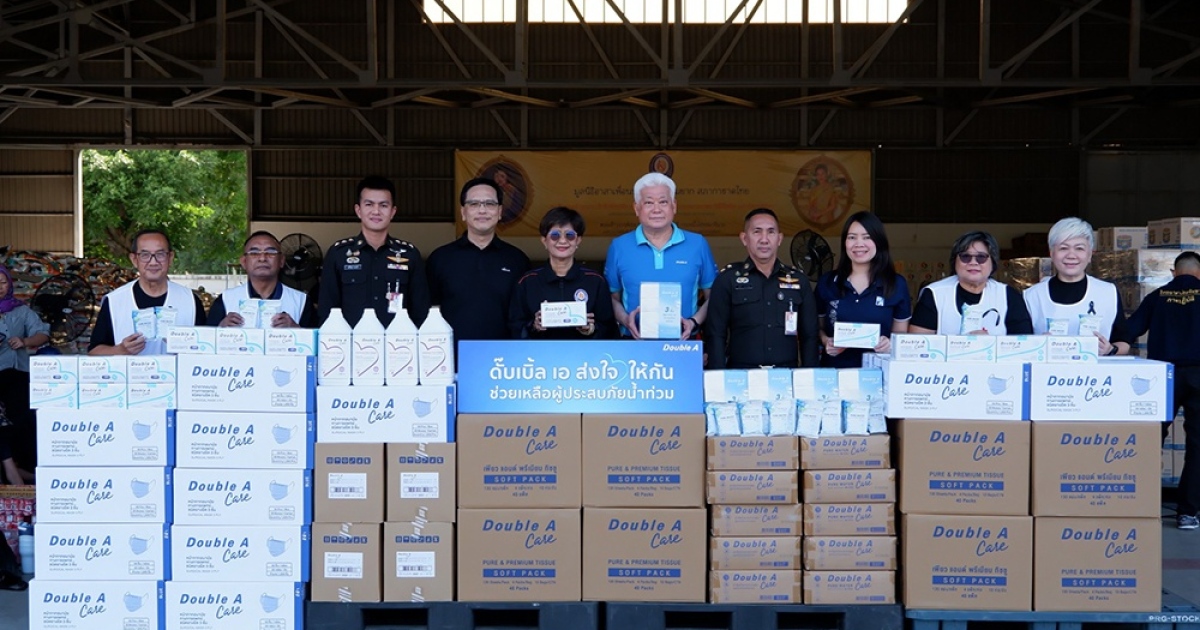ดั๊บเบิ้ล เอ ส่งความห่วงใย ส่งความช่วยเหลือให้ผู้ประสบอุทกภัย นำโดย คุณชาญวิทย์ จารุสมบัติ กรรมการและรองกรรมการผู้จัดการใหญ่ ด้านสื่อสารและภาพลักษณ์องค์กร ดั๊บเบิ้ล เอ เข้ามอบผลิตภัณฑ์เพื่อสุขอนามัย Double A Care ได้แก่ หน้ากากอนามัยทางการแพทย์ น้ำยาทำความสะอาดพื้น, ทิชชูเพียวแอนด์พรีเมียม, ผ้าเช็ดทำความสะอาดผิวสูตรอ่อนโยน (Pure Water Wipes)ให้กับมูลนิธิอาสาเพื่อนพึ่ง (ภาฯ) ยามยาก สภากาชาดไทย เพื่อนำไปช่วยเหลือและฟื้นฟูจากสถานการณ์น้ำท่วมแก่ผู้ประสบภัย โดยเฉพาะในพื้นที่ภาคใต้ที่ได้รับผลกระทบเป็นอย่างมาก โดยมี คุณนฤมล ล้อมทอง กรรมการและรองเลขาธิการมูลนิธิฯ (ด้านการบริหาร) เป็นผู้แทนรับมอบ นอกจากนี้ พนักงานดั๊บเบิ้ล เอ จิตอาสา ยังได้ร่วมบรรจุถุงยังชีพพระราชทานเพื่อบรรเทาความเดือดร้อนและสร้างขวัญกำลังใจให้กับประชาชนอีกด้วย ณ กองการบิน ศูนย์การเคลื่อนย้ายกองทัพบก บางเขน กรุงเทพฯ