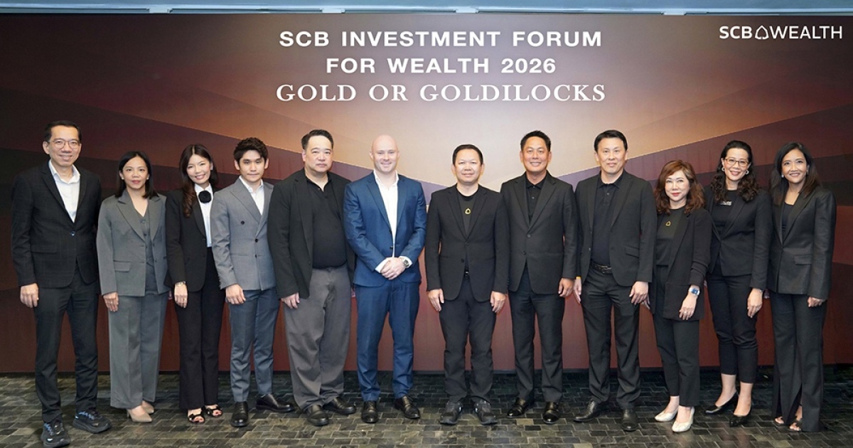 SCB WEALTH จัดงานสัมมนา SCB Investment Forum For Wealth 2026 ในหัวข้อ Gold or Goldilocks ผนึกทีม Holistic และพันธมิตรระดับโลก BlackRock ร่วมถอดรหัสทิศทางเศรษฐกิจโลก และเทรนด์การลงทุนในปี 2569 ให้กับทีมที่ปรึกษาการเงินของธนาคาร นำทีมโดยคุณศรชัย สุเนต์ตา ( ที่ 6 ขวา) ,CFA รองผู้จัดการใหญ่ ผู้บริหารสายงาน Wealth & Investment Product ธนาคารไทยพาณิชย์ พร้อมทีมผู้บริหาร SCB WEALTH และวิทยากร ประกอบด้วย ดร.ฐิติมา ชูเชิด (ที่ 2 ขวา) ผู้อำนวยการอาวุโส ผู้บริหารฝ่ายวิจัยเศรษฐกิจมหภาค SCB EIC นายวชิรวัฒน์ บานชื่น (ที่ 9 ขวา) นักกลยุทธ์ตลาดการเงินอาวุโส SCB FM น.ส.เกษรี อายุตตะกะ (ที่ 1 ขวา) ผู้อำนวยการ Investment Research SCB CIO น.ส.นิสารัตน์ ชมภูพงษ์ (ที่ 10 ขวา) ผู้อำนวยการฝ่ายให้คำปรึกษาด้านความมั่งคั่งและการลงทุน SCB CIO และ Mr. Mark Fuszard, Director, APAC Multi-Asset Strategies & Solutions at BlackRock (ที่ 7 ขวา) เมื่อเร็วๆนี้ ณ ธนาคารไทยพาณิชย์ สำนักงานใหญ่