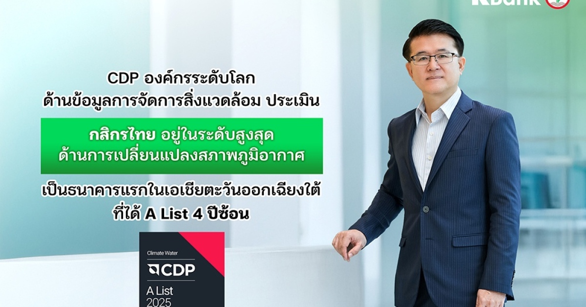 นายจงรัก รัตนเพียร ผู้จัดการใหญ่ ธนาคารกสิกรไทย เปิดเผยว่า ในปี 2568 ธนาคารกสิกรไทยได้รับผลประเมินจาก CDP ซึ่งเป็นองค์กรด้านการประเมินการเปิดเผยข้อมูลการจัดการสิ่งแวดล้อมในระดับโลก ให้อยู่ในระดับสูงสุด A List ในการจัดการและการเปิดเผยข้อมูลด้านการเปลี่ยนแปลงสภาพภูมิอากาศ นับเป็นธนาคารแห่งแรกในเอเชียตะวันออกเฉียงใต้ ที่ได้มาตรฐานผู้นำระดับ A List ติดต่อกัน เป็นปีที่ 4 และปีนี้ยังเป็นครั้งแรกที่ธนาคารได้รับการจัดอันดับให้อยู่ในระดับสูงสุด A List ด้านการบริหารจัดการน้ำ รวมถึงได้รับการจัดอันดับในระดับ A- ด้านการบริหารจัดการป่าไม้ สะท้อนให้เห็นว่าธนาคารได้รับการประเมินให้อยู่ในระดับ Leadership Level ครอบคลุมทั้งมิติการเปลี่ยนแปลงสภาพภูมิอากาศ น้ำ และป่าไม้