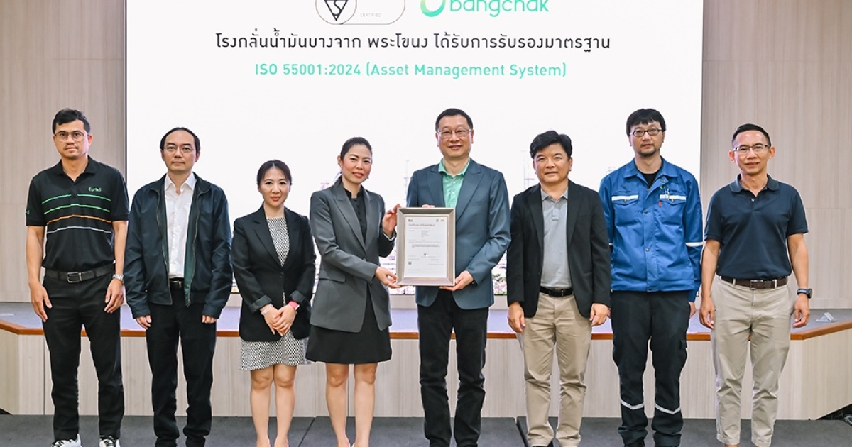 ก้าวสำคัญสู่การบริหารจัดการสินทรัพย์อย่างยั่งยืน 2 โรงกลั่นน้ำมันของบางจาก เป็นโรงกลั่นน้ำมันแห่งแรกในเอเชียแปซิฟิก ผ่านการรับรองมาตรฐาน ISO 55001:2024