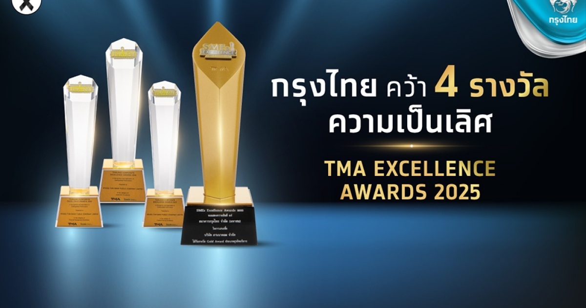 กรุงไทยคว้า 4 รางวัลความเป็นเลิศ จากเวที TMA Excellence Awards 2025 ตอกย้ำผู้นำนวัตกรรมทางการเงิน ขับเคลื่อนเศรษฐกิจและสังคมไทยยั่งยืน