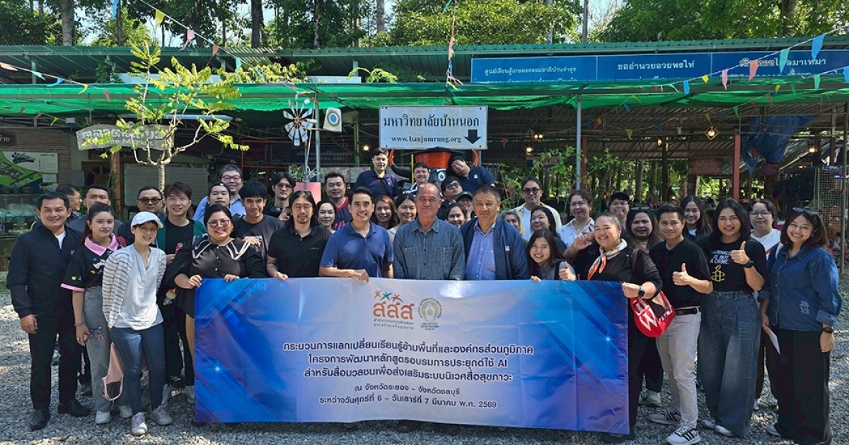 เมื่อวันเสาร์ที่ 7 มีนาคม 2569 ที่ผ่านมา นายชวรงค์ ลิมป์ปัทมปาณี ประธานคณะกรรมการหลักสูตร พร้อมด้วย ผศ.ดร.เอกพล เธียรถาวร ผู้จัดการหลักสูตร และ ผศ.ปาจารีย์ ปุรินทวรกุล นักวิชาการ นำคณะผู้เข้ารับการอบรมหลักสูตรอบรมการประยุกต์ใช้ AI สำหรับสื่อมวลชนเพื่อส่งเสริมระบบนิเวศสื่อสุขภาวะ (AI4Media) เข้าร่วมกิจกรรมกระบวนการแลกเปลี่ยนเรียนรู้ข้ามพื้นที่และองค์กรส่วนภูมิภาค เพื่อรับฟังการบรรยายสรุปการดำเนินงาน พร้อมเยี่ยมชมวิถีเกษตรชุมนุม โดยชุมชนมีส่วนร่วม ณ มหาวิทยาลัยบ้านนอก บ้านจำรุง อ.แกลง จ.ระยอง ทั้งนี้มี นายชาติชาย เหลืองเจริญ ประธานสภาองค์กรชุมชน มหาวิทยาลัยบ้านนอก ให้การต้อนรับ