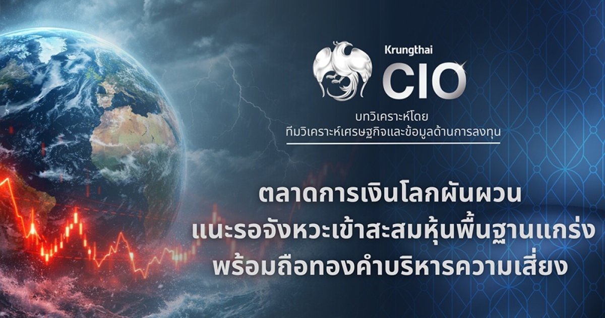 ทีมกลยุทธ์การลงทุน ธนาคารกรุงไทย (Krungthai Chief Investment Office : CIO) วิเคราะห์ภาพรวมการลงทุนประจำสัปดาห์ ระหว่างวันที่ 23-27 มีนาคม 2569 ว่า ตลาดการเงินโลก ยังมีแนวโน้มเผชิญแรงกดดันจากความตึงเครียดในตะวันออกกลาง ส่งผลให้เกิดแรงขายในสินทรัพย์เสี่ยงทั่วโลก โดยเฉพาะราคาพลังงานที่ปรับตัวสูงขึ้น และเริ่มส่งผลต่อบรรยากาศการลงทุน รวมถึงแนวโน้มผลประกอบการของตลาดหุ้นในบางภูมิภาค โดยเฉพาะเอเชีย