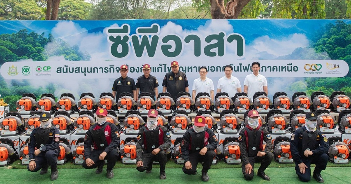 ในการนี้ เครือเจริญโภคภัณฑ์ (ซีพี) ร่วมสนับสนุนเครื่องเป่าลมดับไฟป่าจำนวน 100 เครื่อง เพื่อเสริมศักยภาพการควบคุมไฟในพื้นที่เสี่ยง โดยมอบให้กับหน่วยงานหลัก ได้แก่ กรมป่าไม้ กรมอุทยานแห่งชาติ สัตว์ป่า และพันธุ์พืช รวมถึงเครือข่ายชุมชนในพื้นที่ ซึ่งเป็นอุปกรณ์สำคัญในการควบคุมการลุกลามของไฟ เป่าเศษวัสดุไวไฟ และสร้างแนวกันไฟให้เกิดพื้นที่ปลอดเชื้อเพลิง พร้อมมอบกองทุนประกันภัยให้กับทีม “อาสาดับไฟป่า” ในพื้นที่จังหวัดเชียงใหม่ จำนวน 10,000 นาย เพื่อเป็นขวัญกำลังใจและเป็นหลักประกันในการปฏิบัติงานควบคู่กับการสนับสนุนอุปกรณ์ภาคสนามที่จำเป็น อาทิ เป้น้ำยุทธวิธี รองเท้า ถุงมือ ผ้าปิดหน้า และน้ำดื่ม รวมไปถึงอาหารแห้ง ข้าวสาร อาหารพร้อมรับประทาน และขนมปัง