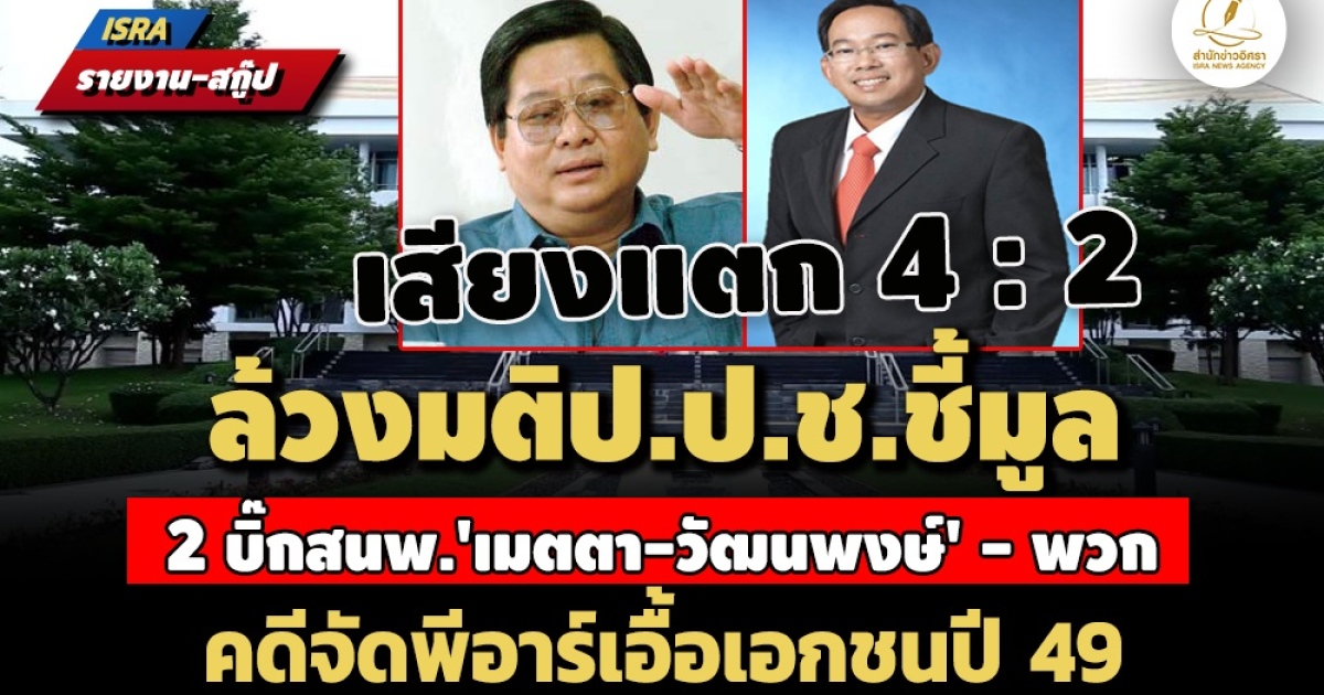 "...คณะกรรมการ ป.ป.ช.มีมติชี้มูลความผิดทั้งทางอาญาและวินัย เห็นชอบให้ส่งรายงาน สำนวนการไต่สวน เอกสารหลักฐาน และคำวินิจฉัยไปยังอัยการสูงสุด (อสส.) เพื่อดำเนินคดีอาญาในศาลซึ่งมีเขตอำนาจพิจารณาพิพากษาคดีกับ นายเมตตา บันเทิงสุข นายวัฒนพงษ์ คุโรวาท นางเอมอร ชีพสุมล นายนที ทับมณี นางศิรินา อินแก้ว นางกานดา เพชรไทย นางธาริณี โชติกเสถียร นางสุพิตร พัดเปรม หรือคำกลัด และนางพัลลภา บริรักษ์บทวลัญช์ หรือยุทธโรดม..."