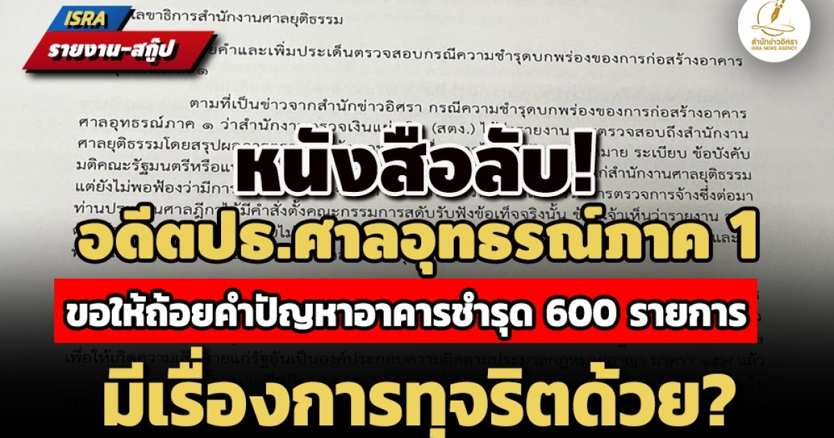 - ชำรุดเพียบ 600 รายการ! ปธ.ศาลอุทธรณ์ภาค 1 แจ้ง สตง.สอบงานก่อสร้างอาคารที่ทำการ 393 ล. (1)