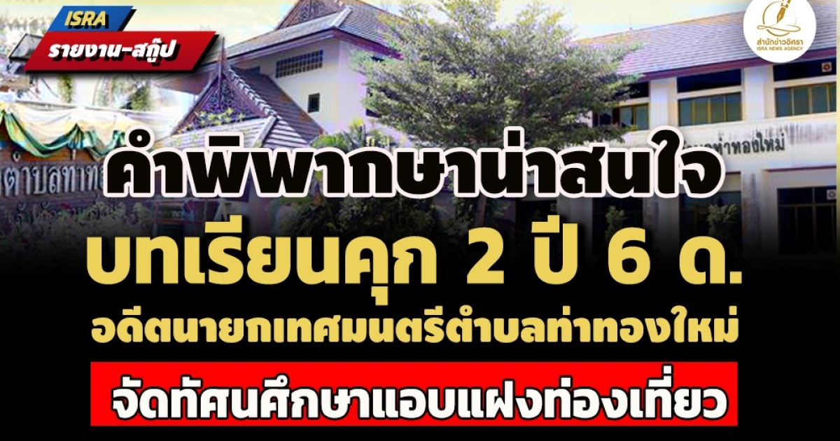 "... พิเคราะห์ข้อเท็จจริงตามสำนวนการไต่สวนของคณะกรรมการ ป.ป.ช.ประกอบรายงานการสืบเสาะและพินิจของจำเลยที่ 1 และที่ 2 แล้ว เห็นว่า จำเลยที่ 1 ใช้อำนาจในตำแหน่งโดยทุจริต อนุมัติเงินงบประมาณของราชการเพื่อพาผู้เข้าร่วมโครงการไปท่องเที่ยว มิใช่เพื่อประโยชน์แก่ทางราชการ อันทำให้เทศบาลตำบลท่าทองใหม่ต้องเสียหายเป็นเงินจำนวนสูงถึง 1,036,060 บาท ภายหลังก็ไม่มีการชดใช้เงินคืนแก่ส่วนราชการพฤติการณ์เป็นเรื่องร้ายแรง จึงไม่รอการลงโทษ..."