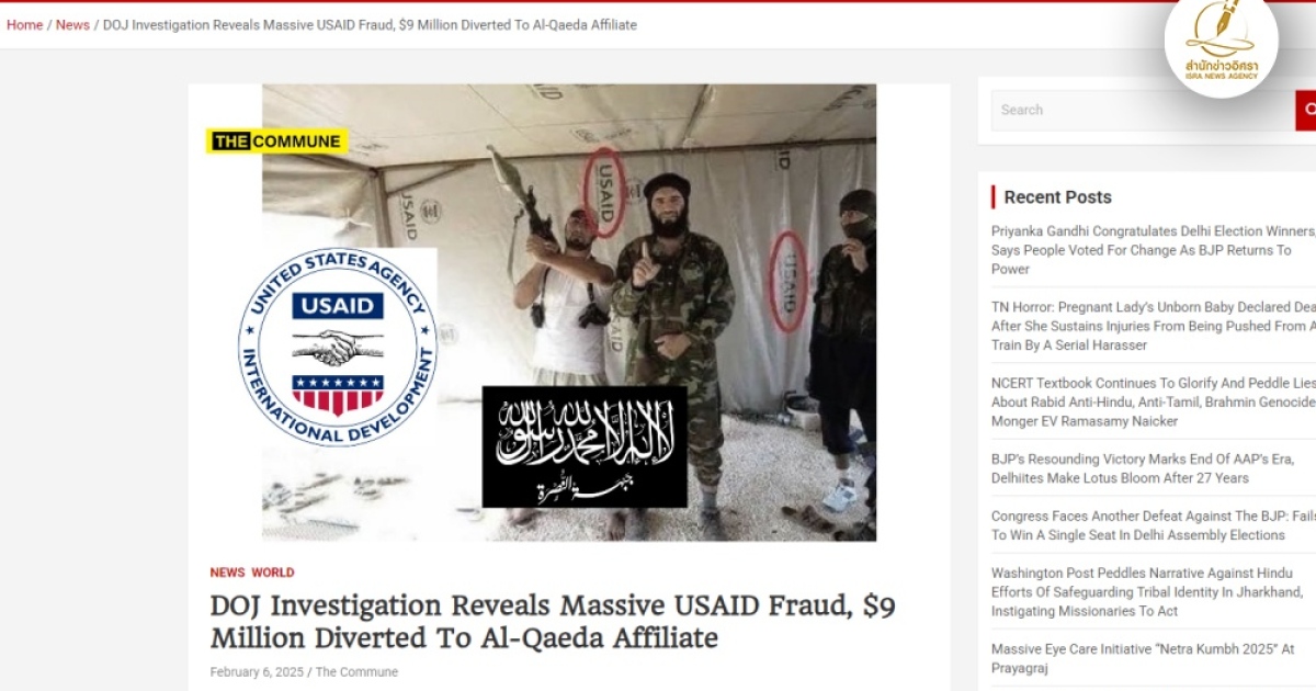 เรียบเรียงจาก:https://highlandcountypress.com/news/billions-questioned-usaid-spending-millions-us-taxpayers-dollars-went-fund-terrorism#gsc.tab=0 ,https://thecommunemag.com/doj-investigation-reveals-massive-usaid-fraud-9-million-diverted-to-al-qaeda-affiliate/?fbclid=IwY2xjawIUmz9leHRuA2FlbQIxMAABHa69yJbDE2vYGbqzcTuEARqpTElewgQruVcWVbnZa-KrdfuurXX1xrWy7g_aem_Tg-FjBDkjJj-bXAtTNCYRQ