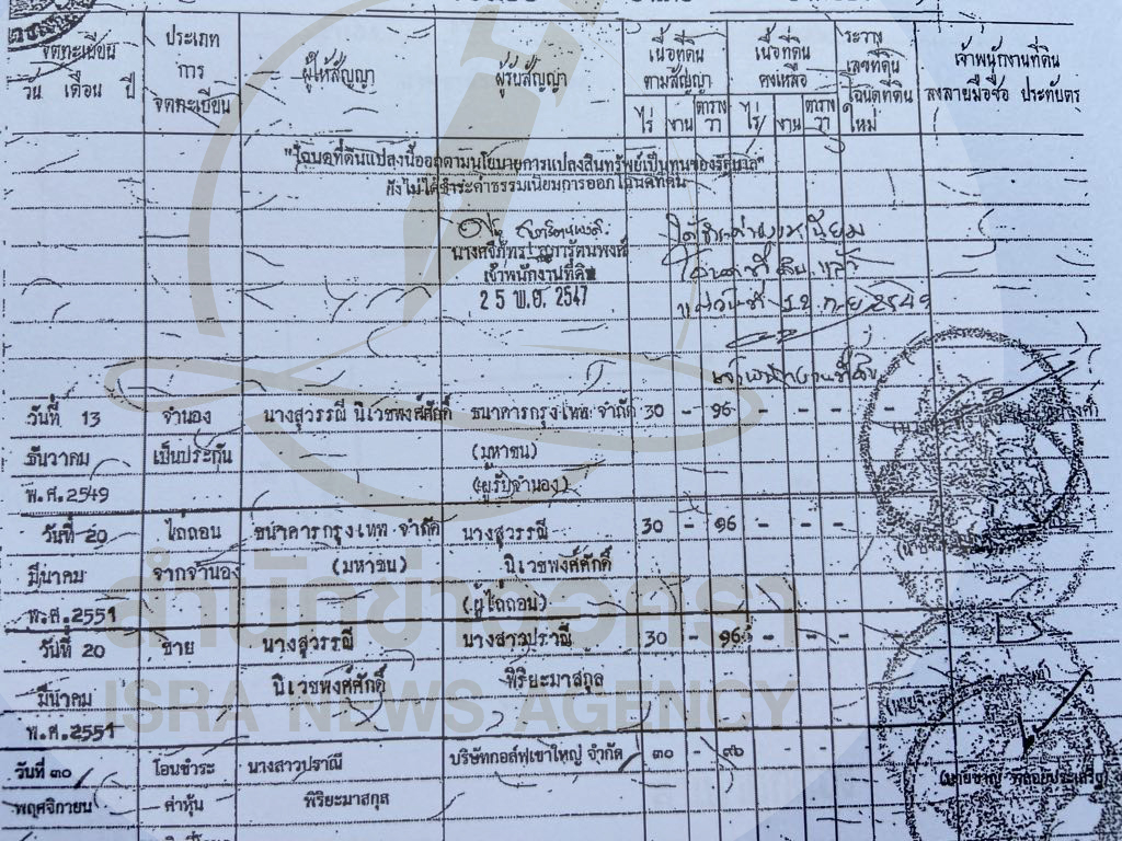 ISRA INVESTIGATIVE! ขุดลึกอีกลอต 9 แปลง โฉนดสนามกอล์ฟแรนโช ชาญวีร์ น้องสาว‘อนุทิน ชาญวีรกูล’ เจ้าของเดิม 6 คนแจ้งที่อยู่ในโคราชทั้งหมด เอกสารฯ 6 ฉบับ‘ออกตามนโยบายแปลงสินทรัพย์เป็นทุนรัฐบาล’ ขายให้ กก.ผู้ถือหุ้นใหญ่ ช่วงปี 2550 - 2552 ก่อนโอนทรัพย์สินบริษัทฯ พ.ย.2560
