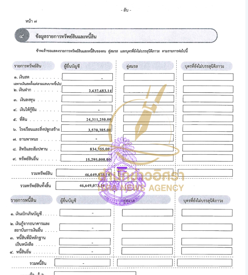 แจ้งมีรายได้รวมต่อปีโดยประมาณ 960,000 บาทประกอบด้วย เงินเดือน นายก อบจ. (ประมาณรายได้ระหว่าง ก.พ.-ธ.ค. 2564) 760,000 บาท เงินได้จากการแสดง 200,000 บาท แจ้งมีรายจ่ายต่อปีโดยประมาณ 778,655 บาท