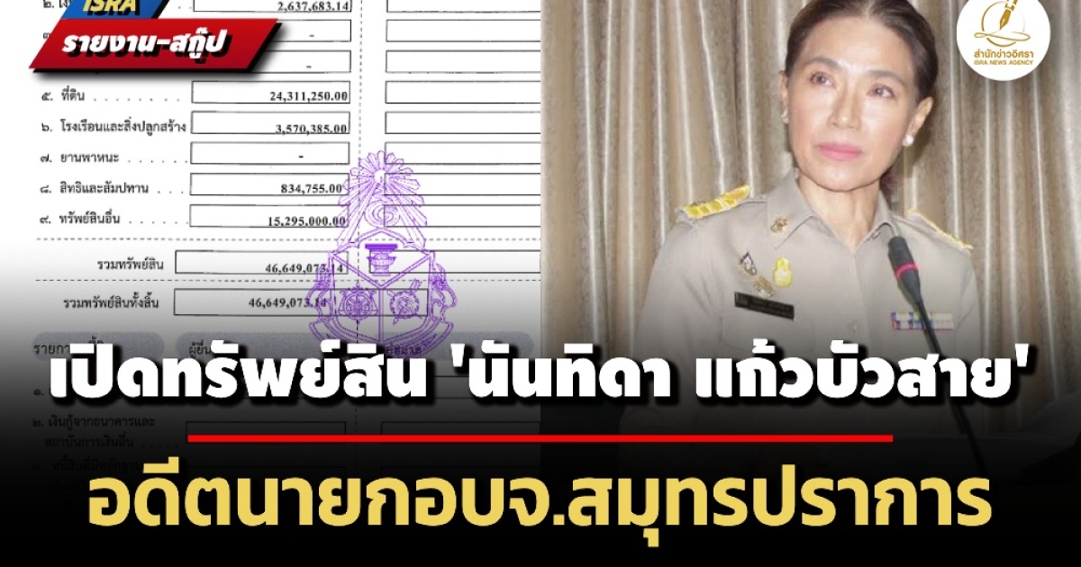 ป.ป.ช. เปิดทรัพย์สิน 'นันทิดา แก้วบัวสาย' อดีตนายกอบจ.สมุทรปราการ ทรัพย์สิน 46 ล. เทียบกรณีเข้ารับตำแหน่งปี 2564-ลดลง 56 ล.