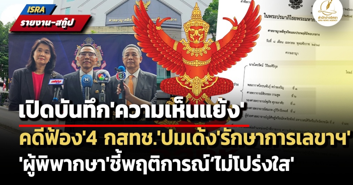 สำนักข่าวอิศรา (www.isranews.org) จึงขอนำเสนอ ‘บันทึกความเห็นแย้งคำพิพากษา’ ของ ‘ผู้พิพากษาซึ่งมีความเห็นเป็นผลร้ายแก่จำเลยมาก’ ในคดีดังกล่าว (คดีหมายเลขดำที่ อท 155/2566 คดีหมายเลขแดงที่ อท 64/2568) มีรายละเอียด ดังนี้