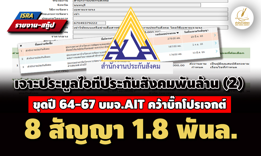 "...จากข้อมูลที่ตรวจสอบพบทั้งหมด เท่ากับว่า นับตั้งแต่ปี 2564-2567 บริษัท แอ็ดวานซ์อินฟอร์เมชั่นเทคโนโลยี จำกัด (มหาชน) ได้รับงานด้านไอทีระดับบิ๊กโปรเจกต์ จาก สำนักงานประกันสังคม จำนวนทั้งสิ้น 8 โครงการ รวมวงเงิน 1,854,672,000 บาท (เท่าที่ตรวจสอบพบ) ..."