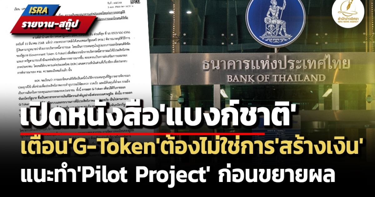 @‘ธปท.’ชี้‘G-Token’ต้องไม่ใช่การ‘สร้างเงิน’-ทำในวงจำกัดก่อน