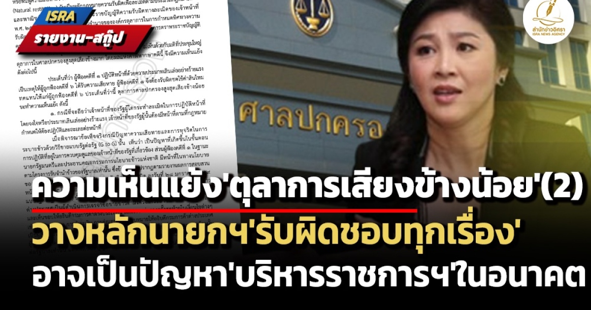 ความเห็นแย้ง'ตุลาการเสียงข้างน้อย'(1) ทุจริต'จีทูจี'เกิดจาก'จนท.'-'ยิ่งลักษณ์'ชดใช้ 20%