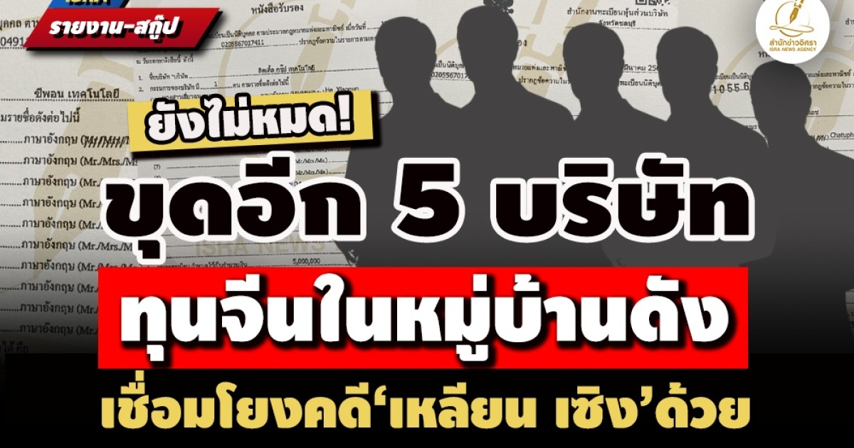 - เปิดชุดใหม่! อีก 5 บริษัททุนจีนในหมู่บ้านหรู รูปแบบเดิม คนไทยจดฯก่อตั้งก่อนโอนหุ้น