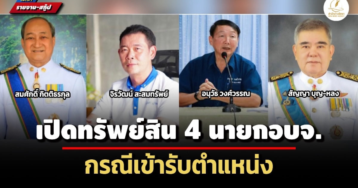 ป.ป.ช. เปิดทรัพย์สิน 4 นายกองค์การบริหารส่วนจังหวัด 'อนุวัธ วงศ์วรรณ' อบจ.แพร่ มากสุด 593 ล.-'จิรวัฒน์ สะสมทรัพย์' อบจ.นครปฐม 405 ล.-'สัญญา บุญ-หลง' อบจ.สระบุรี 255 ล.-'สมศักดิ์ กิตติธรกุล' อบจ.กระบี่ 51 ล.