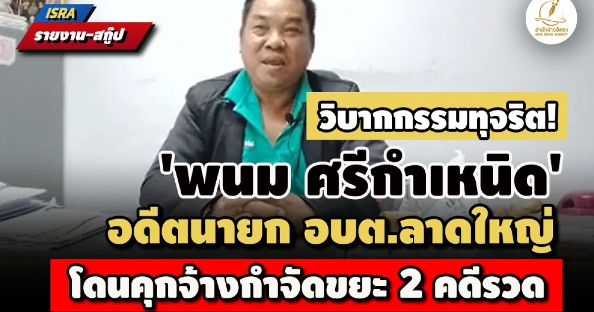 "...เท่ากับว่า นายพนม ศรีกำเหนิด อดีตนายก อบต.ลาดใหญ่ คดีแรก โดนคุก 3 ปี , คดีสอง 6 ปี และเป็นคดีที่เกี่ยวกับการจ้างกำจัดขยะมูลฝอย ทั้ง 2 คดี นับเป็นวิบากกรรมที่หนักหนา อันเป็นผลพ่วงมาจากคดีทุจริตในอดีตที่ก่อไว้ ..."