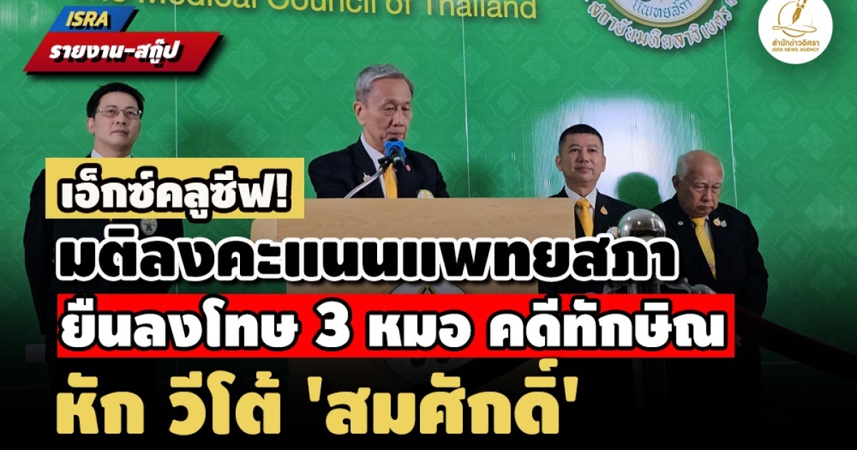 - เสียงเกิน 2 ใน 3! แพทยสภายืนยันมติลงโทษ 3 หมอ คดีทักษิณ - วีโต้ 'สมศักดิ์' ไม่เป็นผล