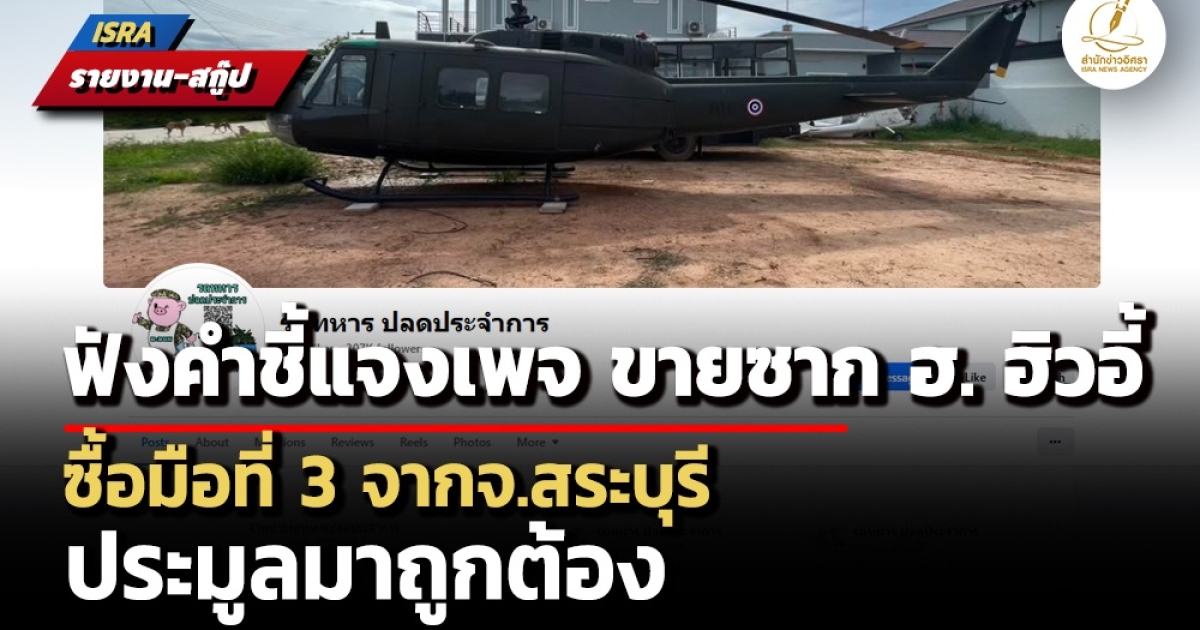 สืบเนื่องจากที่สำนักข่าวอิศรา (www.isranews.org) รายงานข่าวเกี่ยวกับเพจเฟซบุ๊กขายยุทโธปกรณ์ทางด้านการทหารอีกเพจหนึ่ง เผยแพร่คลิปประกาศขาย เฮลิคอปเตอร์เก่าของกองทัพเป็นซาก ฮท-1 หมายเลข 6789 กองบินปีกหมุนที่ 1 ลำละ 2,800,000 บาท อ้างว่ามีจำนวน 6 ลำ