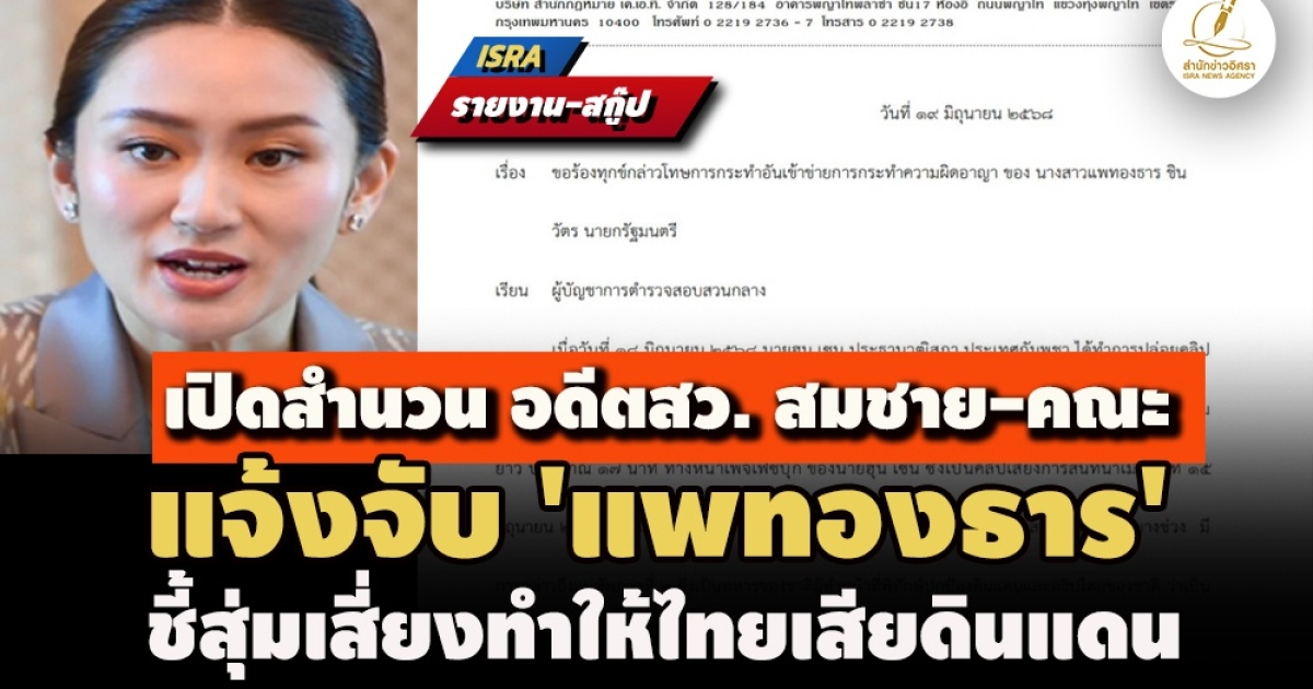 • เปิดสำนวน อดีตสว.สมชาย - คณะ แจ้งจับนายกฯ คลิปหลุดฮุนเซน ชี้สุ่มเสี่ยงทำให้ไทยเสียดินแดน