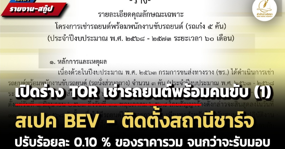 หมายเหตุ : สำนักข่าวอิศรา (www.isranews.org) สืบเนื่องจากการประชุมคณะรัฐมนตรี (ครม.) นัดพิเศษ เมื่อวันที่ 3 กรกฎาคม 2568 ที่มีนายสุริยะ จึงรุ่งเรืองกิจ รองนายกรัฐมนตรีและรมว.คมนาคม ในฐานะผู้ปฏิบัติราชการแทนนายกรัฐมนตรี มีมติอนุมัติให้กรมการขนส่งทางรางเปลี่ยนแปลงรายการก่อหนี้ผูกพันข้ามปีงบประมาณ พ.ศ. 2568 รายการค่าเช่ารถยนต์พร้อมพนักงานขับรถยนต์ 5 คัน และรายการค่าเช่ารถยนต์พร้อมพนักงานขับรถยนต์ 3 คัน รายการก่อหนี้ผูกพันงบประมาณ 5 ปี (ปี 2568-2573) วงเงินงบประมาณทั้งสิ้น 15,105,000 บาท เหลือ 11,025,000 บาท